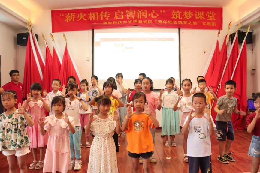 小暑清和夏日长,汇演笑语颂风华。走近湖南省怀化市通道侗族自治县万佛山镇木脚村,外面雨声如织却掩盖不住教室里此起彼伏的欢呼声和掌声。建团百年之际,为丰富当地人民精神文化生活,助力乡村文化振兴,7月19日上午,jdb电子游戏官方网站“青年红色筑梦之旅”实践团组织开展了“筑梦课堂”文艺汇演暨教学成果作品展。本次活动邀请了省人防办人事处副处长驻木脚村工作队长何绍芳,省人防办指挥通信处副处长驻木脚村工作队员申利华,木脚村党总支书记吴菊凤,木脚村党总支副书记杨进松等出席,湘潭大学和湖南中医药大学大学生社会实践团代表、jdb电子游戏官方网站实践团全体成员与当地村民参加活动。