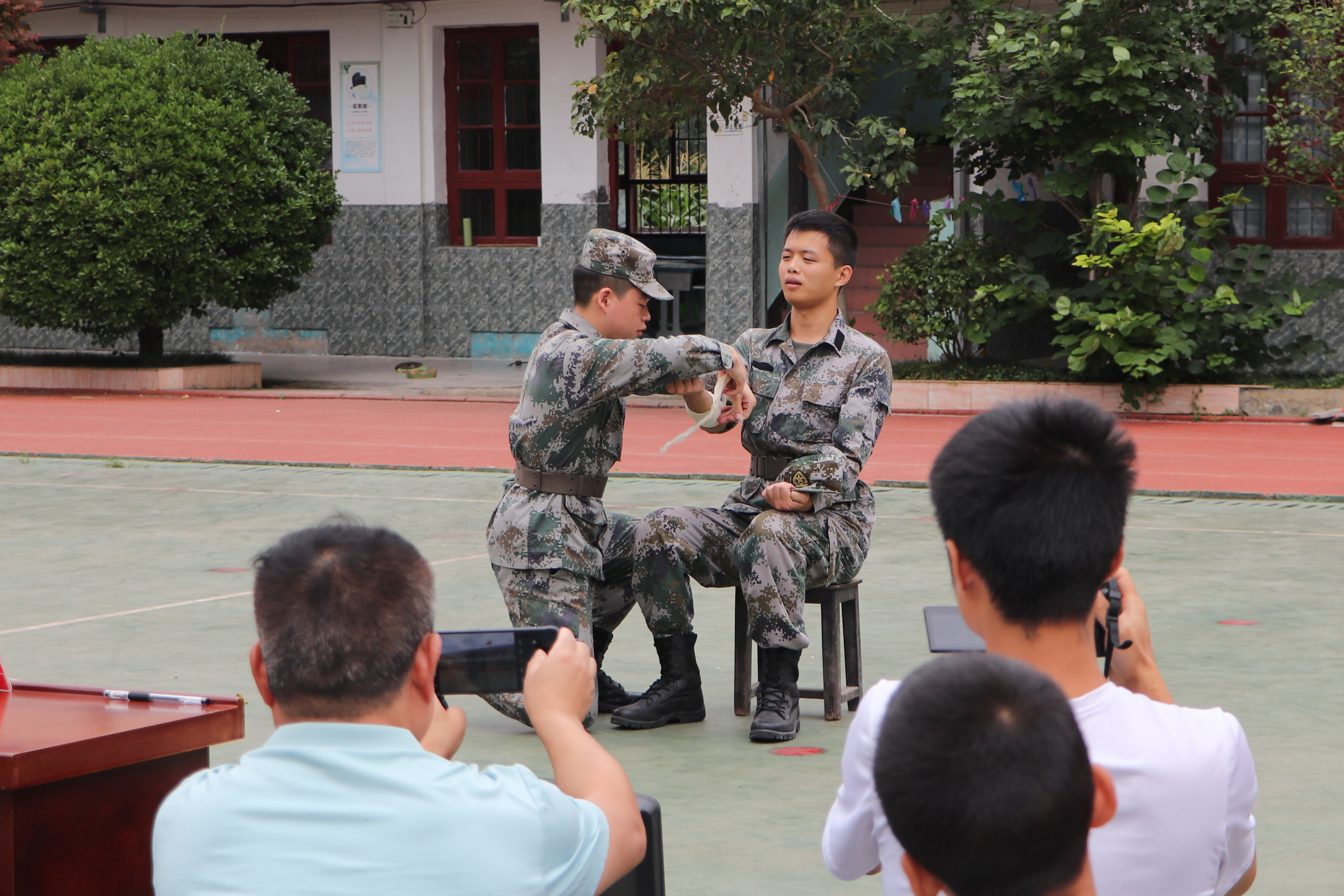 图 退伍先锋队队员演示应急救助包扎