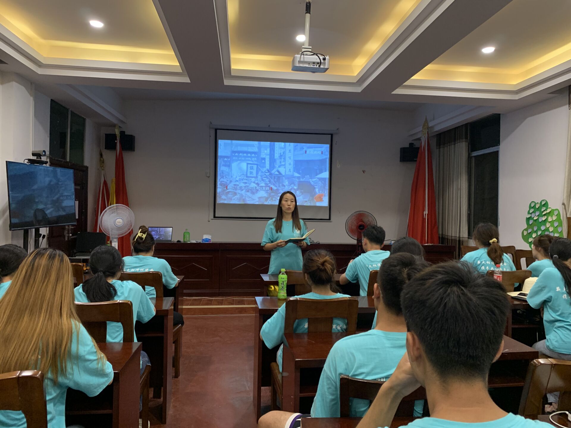 图 学院“三下乡”志愿者集中观看《远方—在复兴的赛道上》的现场