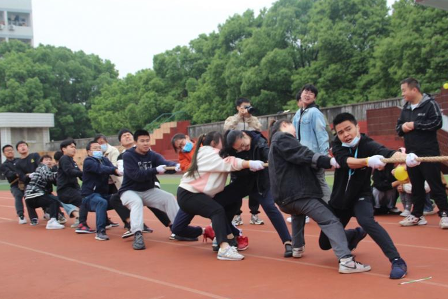 图 机电学部各部门成员奋力拔河