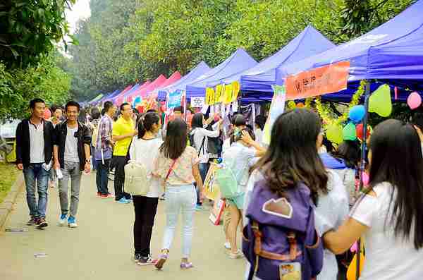 10月12日,我校一年一度的百团招新在电信路口至八教道路举行,全校129个社团集体亮相,其中隶属于jdb电子官网的12个社团在此招才纳新。整齐划一的深蓝帐篷、五彩缤纷的海报、拿着喇叭高声介绍的社团成员和带着兴奋好奇目光四处张望的新生构成了火爆的百团招新场面。各个社团使出浑身解数,吸引新生的加入。