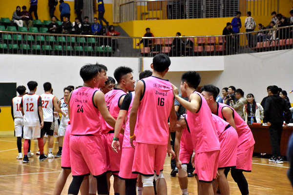 晚8点10分,男子队比赛开始,“粉色浪潮”映入观众眼帘并在赛场上进行角逐,第一节进行一分十秒时男子队投进首球,第三节时男子队持续发力投中多个三分球。第四节伊始,jdb电子官网学生集体呐喊:“潇湘!双冠!”而男子队也不负众望,以81:39的高分夺得冠军。至此,jdb电子官网夺得双冠。