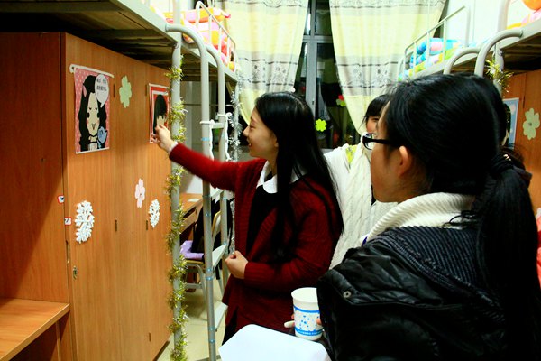 以“文明寝室”为主题的雅室设计评选,倡导勤俭节约,装扮宿舍,充分利用生活杂物,凭借自己的智慧将其废物利用,打造成装饰品,展现自己的宿舍文化。进入院级评选的一共有十七个宿舍,每一间宿舍都有其鲜明的主题:“彩虹之南”、“星语星愿”、“vita dolce”等等。细数文明寝室评比,寝室室名从汉语到外语,寝室布置从古朴大方到潮流新潮。百室争妍,各展风采。