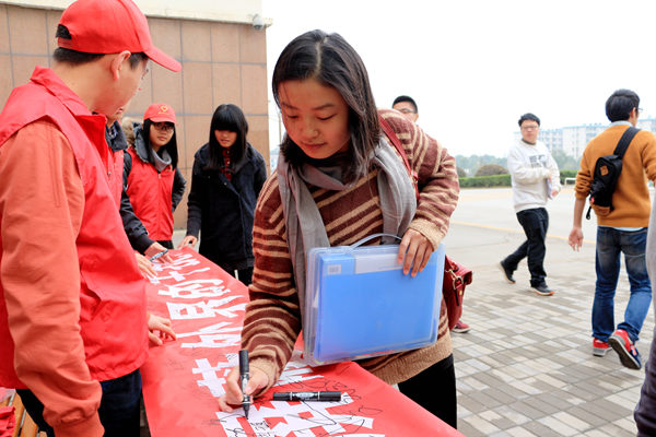 伴随着上课铃声敲响,此次签名活动接近了尾声。横幅上也已经布满同学们密密麻麻的名字。而在每个名字背后,都饱含了同学们对自己大学生活最美好的期盼。