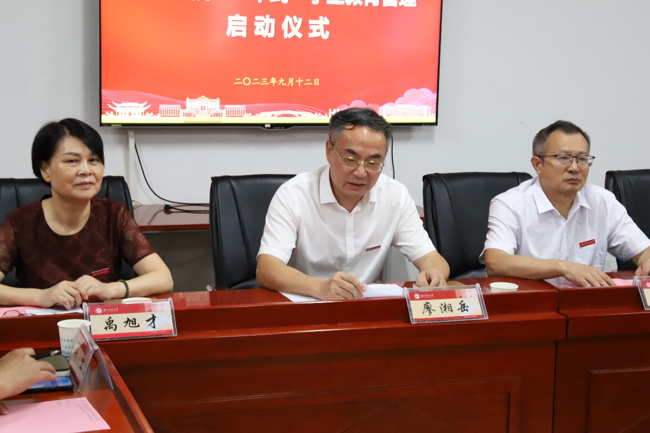 为深入推进“三全育人”综合改革,全面落实立德树人根本任务,切实践行以生为本的育人理念,不断提高人才培养质量,9月12日下午,jdb电子游戏官方网站在立德楼211会议室举行“一本式”学生教育管理启动仪式。学校党委委员、副校长廖湘岳,学生工作部(处)正处级组织员黄伟出席启动仪式,学院全体院领导、辅导员及学生代表参加,活动由学院党委副书记叶军主持。
