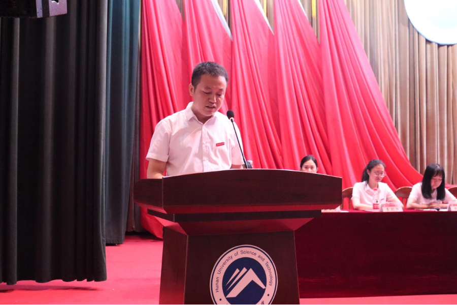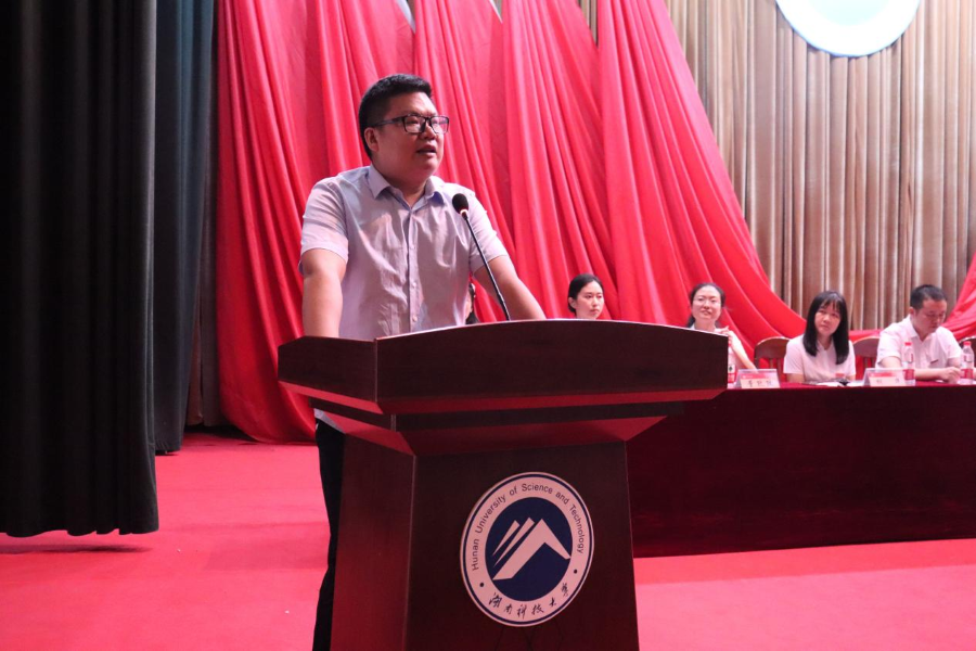 禹旭才以《心怀“国之大者”,争当“国之大才”》为题发表讲话,结合“唯实惟新,至诚致志”的科大校训,鼓励新生们从大处着眼,从小处着手,胸有“至诚心”,怀揣“致志情”,脚踏“唯实路”,书写“惟新篇”。她说道:“请同学们用实际行动诠释‘我命由我不由天’的豪情壮志,用实际行动证明‘请党放心 强国有我’的时代担当,在思想淬炼、专业训练、实践锻炼中成长为硬核潇湘人!”