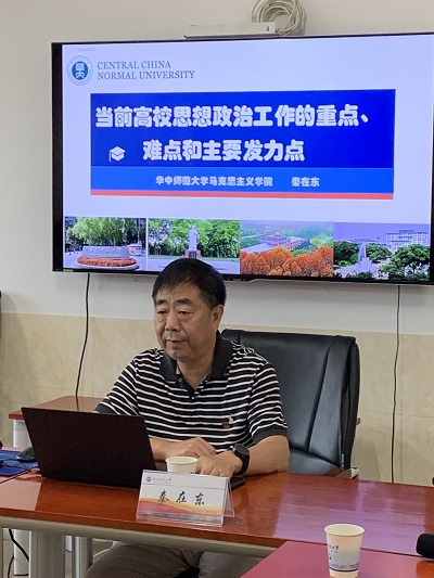 2020年7月3日上午8:30,学院“潇湘之声”第7讲在立德楼417会议室火热开讲。华中师范大学马克思主义学院博士生导师秦在东教授应邀作“当前高校思想政治工作的重点、难点和主要发力点”主题报告,院长禹旭才教授主持。jdb电子官网全体教职工及相关职能部门领导与会聆听了这场精彩讲座。