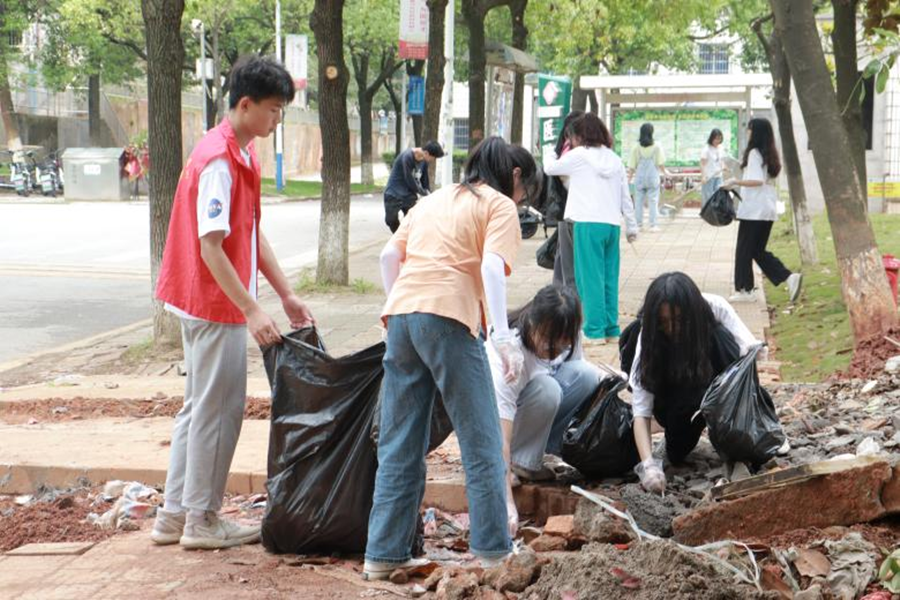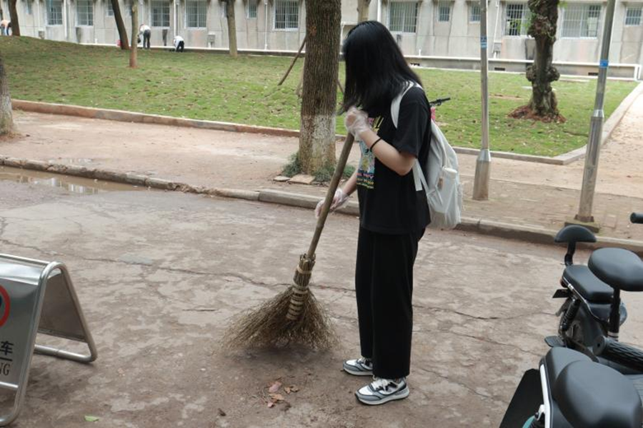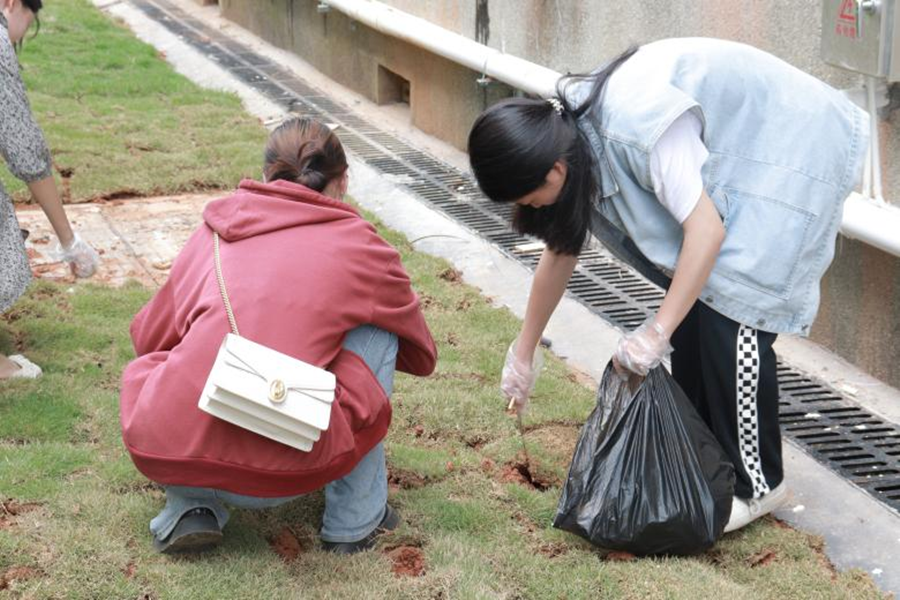 学员们的目标是用自己的努力美化校园,尽己力参与到打造绿色校园建设中,致力于将藏在不显眼的暗处垃圾找出并铲除干净。当学员们拿开南图一侧排水沟上的石膏板时,大家在里面发现了许多很难降解的垃圾,他们破坏学校整体形象、在暗处散发恶臭。而这些垃圾被细心的学员们彻底清除,校园面貌焕然一新。