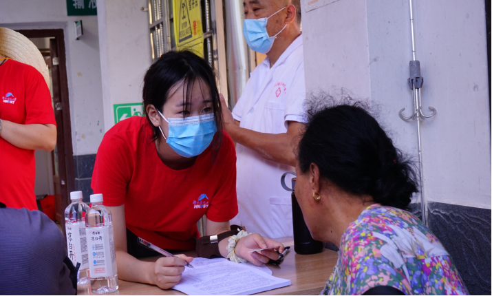 图 实践组成员协助医护人员整理村民信息